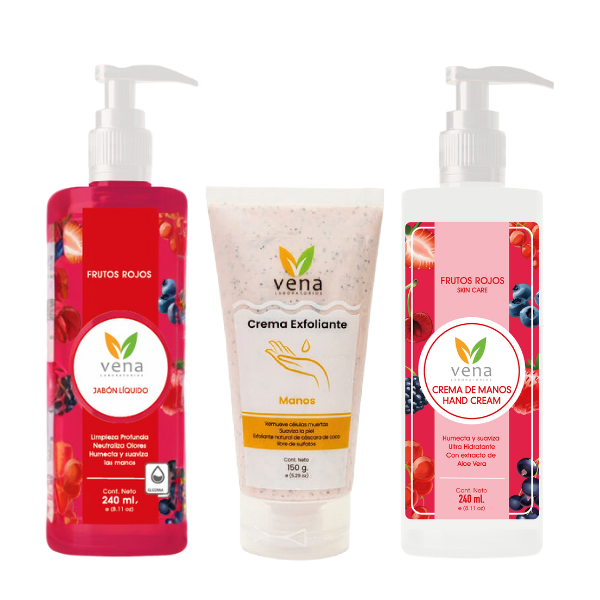 Pack Cuidado de Manos Vena: Jabón Líquido, Exfoliante y Crema Hidratante
